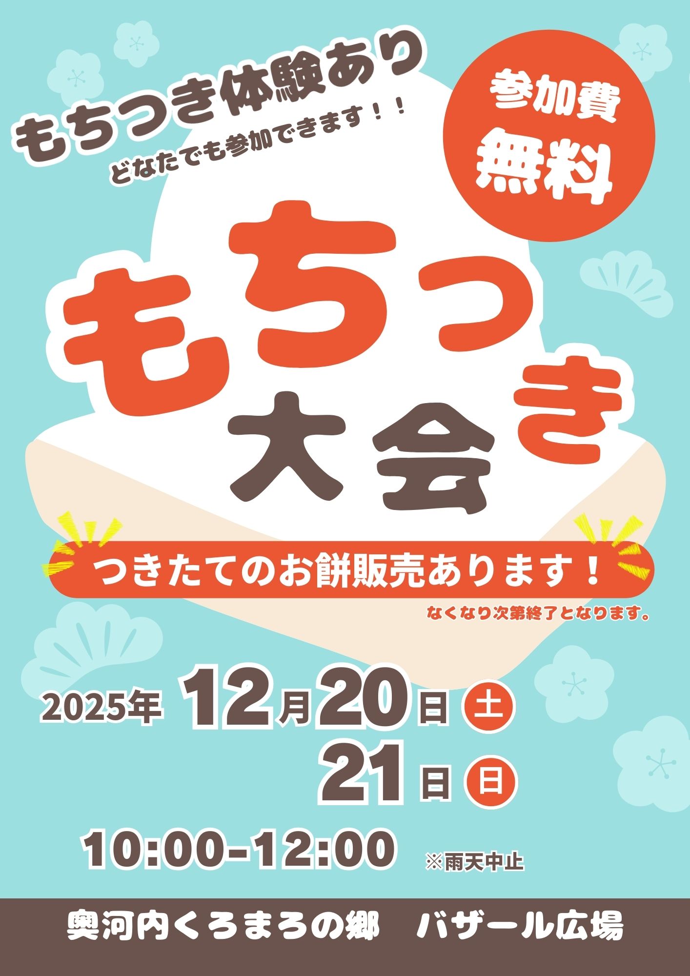 12月20日・21日 餅つき体験&販売会 開催!